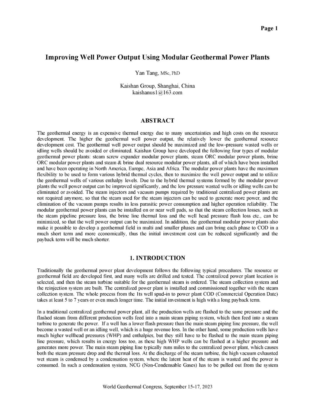 《Improving Well Power Output Using Modular Geothermal Power Plants》論文