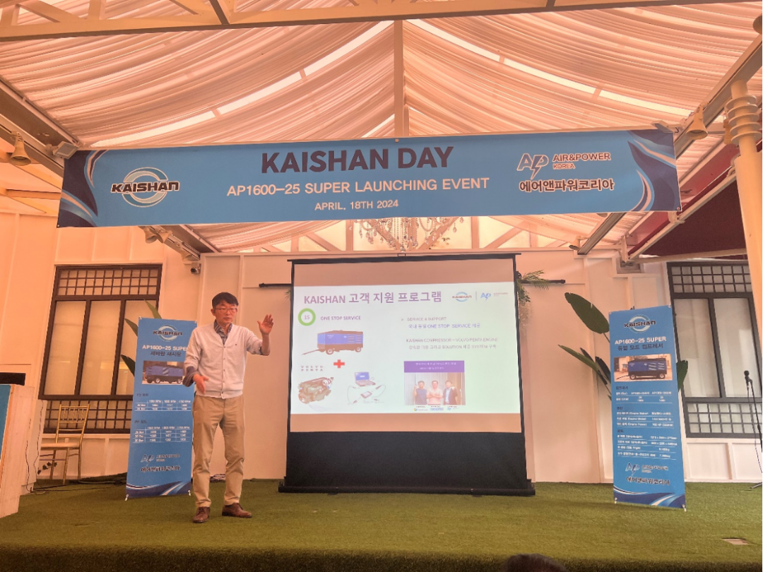 A&P公司總經理Mr.Koh Kwanhyun主持了活動,并專題報告、介紹了開山集團,向韓國客戶介紹了開山強大的研發實力,說明了開山移動空氣壓縮機的性能和技術特點。來自基礎建設、樁基應用、地熱鉆井、水井鉆井、礦山市場的100余位客戶認真聆聽了Mr.Koh的講解。