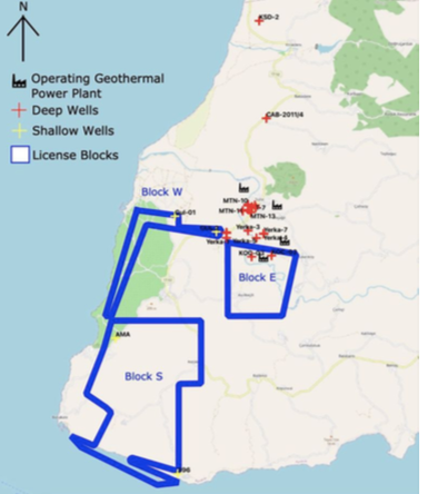 圖1:TTG的地熱開發準證,其中藍色邊界線內為準證覆蓋區域(E區塊Transmark GPP項目所在地)。